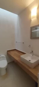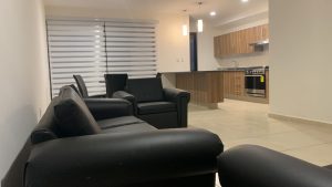 Completamente amueblada, esta residencia ofrece un ambiente acogedor y funcional. La recámara principal, con una cómoda cama queen, cuenta con un amplio vestidor y un baño independiente, mientras que las dos recámaras secundarias están equipadas con camas individuales, perfectas para cualquier necesidad.