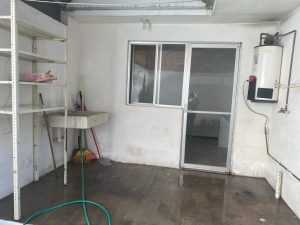 Área de servicio con lavadero, calentador de agua y espacio para lavadora.